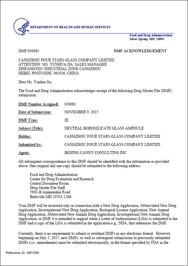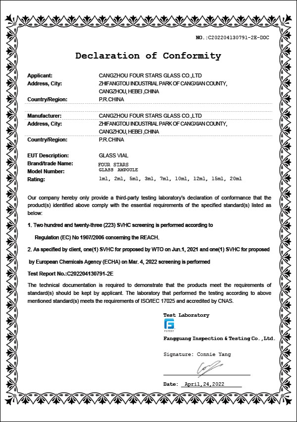 DMF安瓿瓶認(rèn)證證書 |