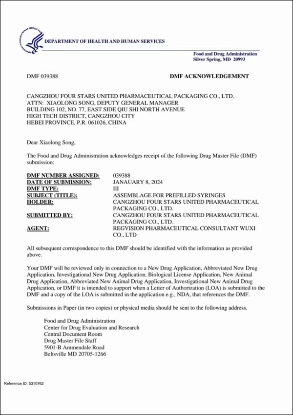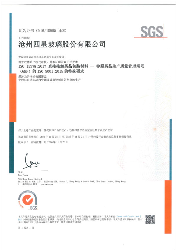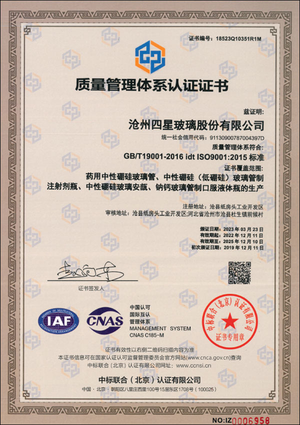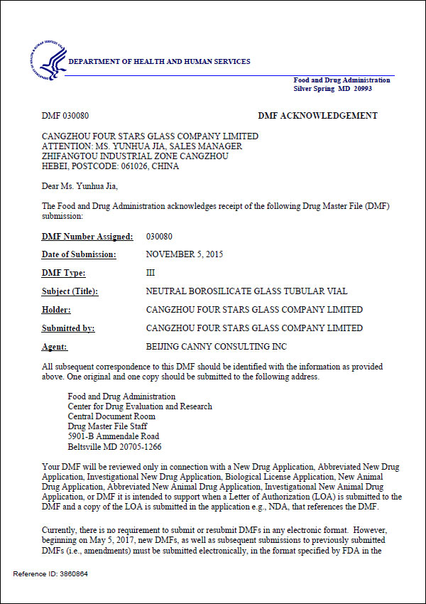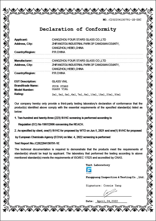 DMF西林瓶認(rèn)證證書 |
