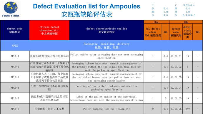 我們對安瓿的缺陷制定了缺陷評估表,對95項缺陷進(jìn)行質(zhì)量控制,涵蓋了全部的缺陷項目,能使您對我們的產(chǎn)品質(zhì)量完全放心。