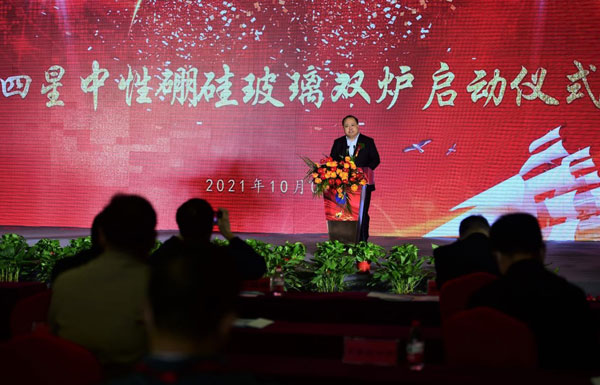 國家工信部石琳女士在致辭中講到,醫(yī)用包裝材料是直接接觸藥劑的材料,直接影響藥劑的質量和人民生命安全,中性硼硅玻璃,具有優(yōu)良的化學穩(wěn)定性,是注射劑疫苗等藥劑包裝材料的最佳選擇。工信部原材料司作為新冠病毒疫苗生產服務網絡專員第三組單位,全面貫徹落實黨中央國務院工作部署,全力做好新冠病毒疫苗生產組織和保障工作,千方百計幫助企業(yè)增產擴能,全力做好疫苗接種任務,關鍵節(jié)點的疫苗瓶需求保障工作。四星玻璃作為我們的第一批生產研制藥用玻璃企業(yè),歷經多年的技術攻關,成功攻克了中性硼硅玻璃融化澄清成型的技術難題。制備出具有自主知識產權的中硼硅玻璃管,產品質量符合相關要求,獲得用戶的認可,保障我國醫(yī)藥產品產業(yè)鏈的工業(yè)安全。